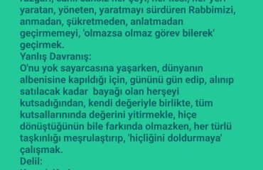 Oysa bir aleti aldığınızda kullanma kılavuzunu da hediye ederler değil mi? Size de edildi ama farkında mısınız? Okuyup yazmaya başladığınız yedi yaşından bu yana çok olsa da henüz kapağına bile dokunmadınız değil mi? Ya da anlamadığınız dilden okuyarak oyalanıp komşunun o aleti nasıl kullandığını, kullanım kılavuzunuz yerine ondan öğrendiğiniz gibi dini sahibi dışında herkese sordunuz, her öğrendiğinizle biraz daha haddi aşıp kitaptan uzaklaştınız değil mi? Yol yanlış, yöntem yanlış, bilgi yanlış beyler, bayanlar, gençler, saçı başı ağarmasına rağmen genç görünme yarışında biraz da komikleşenler. Artık alavereyi, dalavereyi, salıvermeyi bırakın da baş aşağı düşmeden çukura, hem gelirken hem de giderken kontrolün siz de olmadığını hatırlayıp kontrolü O’na yani Rahmân ve Rahîm Allah’a bırakın. İnanın tüy kadar hafifleyecek, bir ömür zorluklarınızda O’nu yanı başınızda, yüreğinizde hissedeceksiniz! Yetmez mi?