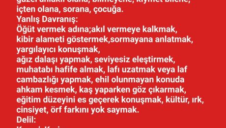 Yanlış Davranış: - Allah için yapılması gereken bir eylemi, O’nun dışındaki biri ya da birileri istiyor diye yapmak.