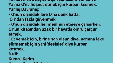 Yalnız Allah’a kayıtsız şartsız teslim olmak ve Yalnız O’nu hoşnut etmek için kurban kesmek.
