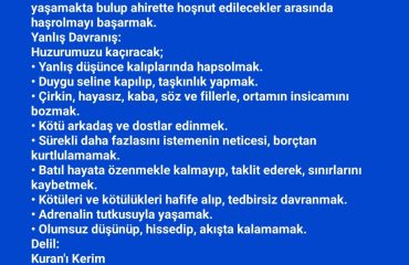 Cevap: ‘Yaptıklarına sevinen ve yapmadıkları ile övünen insanların azaptan kurtulacağını sanma. Onlara elem dolu bir azap vardır.’ Al-i İmran Suresi 188