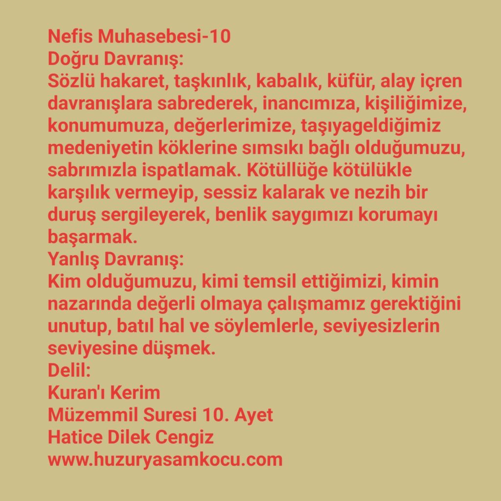 Sözlü hakaret, taşkınlık, kabalık, küfür, alay içren davranışlara sabrederek, inancımıza, kişiliğimize, konumumuza, değerlerimize, taşıyageldiğimiz medeniyetin köklerine sımsıkı bağlı olduğumuzu, sabrımızla ispatlamak. Kötüllüğe kötülükle karşılık vermeyip, sessiz kalarak ve nezih bir duruş sergileyerek, benlik saygımızı korumayı başarmak.