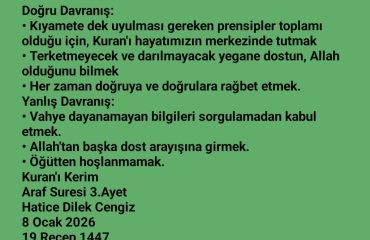- Dini, dinin sahibi olan Allah’tan öğrenmek ve içtenlikle yalnız O’na yalvarmak.
