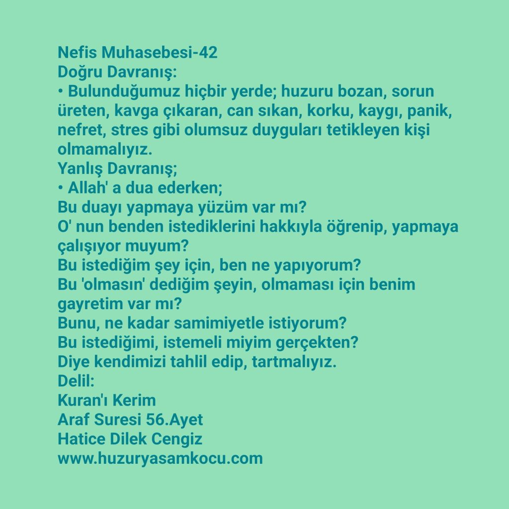 • Bulunduğumuz hiçbir yerde; huzuru bozan, sorun üreten, kavga çıkaran, can sıkan, korku, kaygı, panik, nefret, stres gibi olumsuz duyguları tetikleyen kişi olmamalıyız.